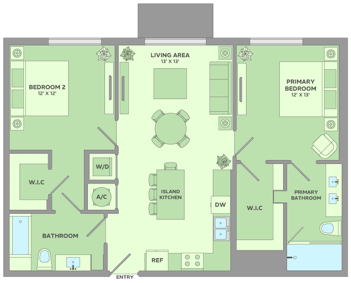 2 Bed / 2 Bath / 1027 AC Square Feet