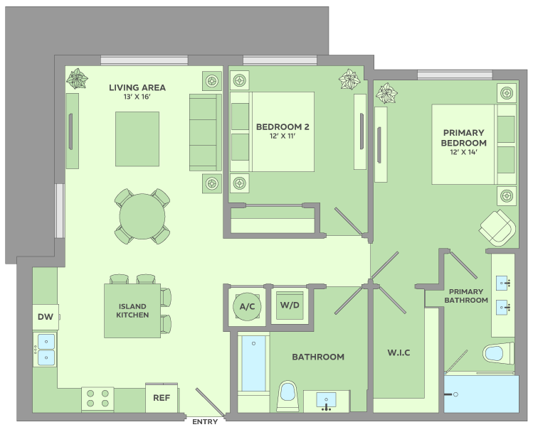 2 Bed / 2 Bath / 1127 AC Square Feet