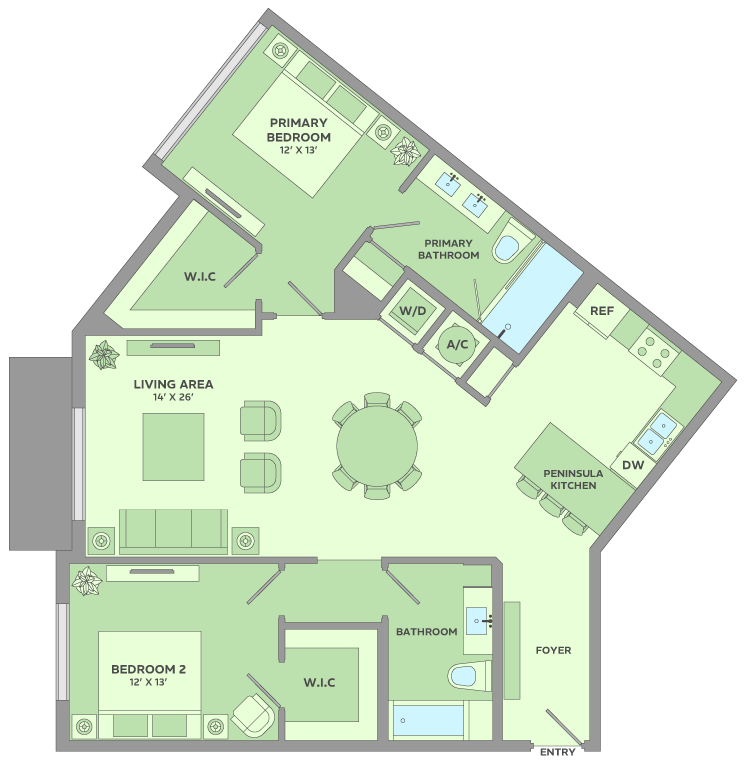 2 Bed / 2 Bath / 1292 AC Square Feet